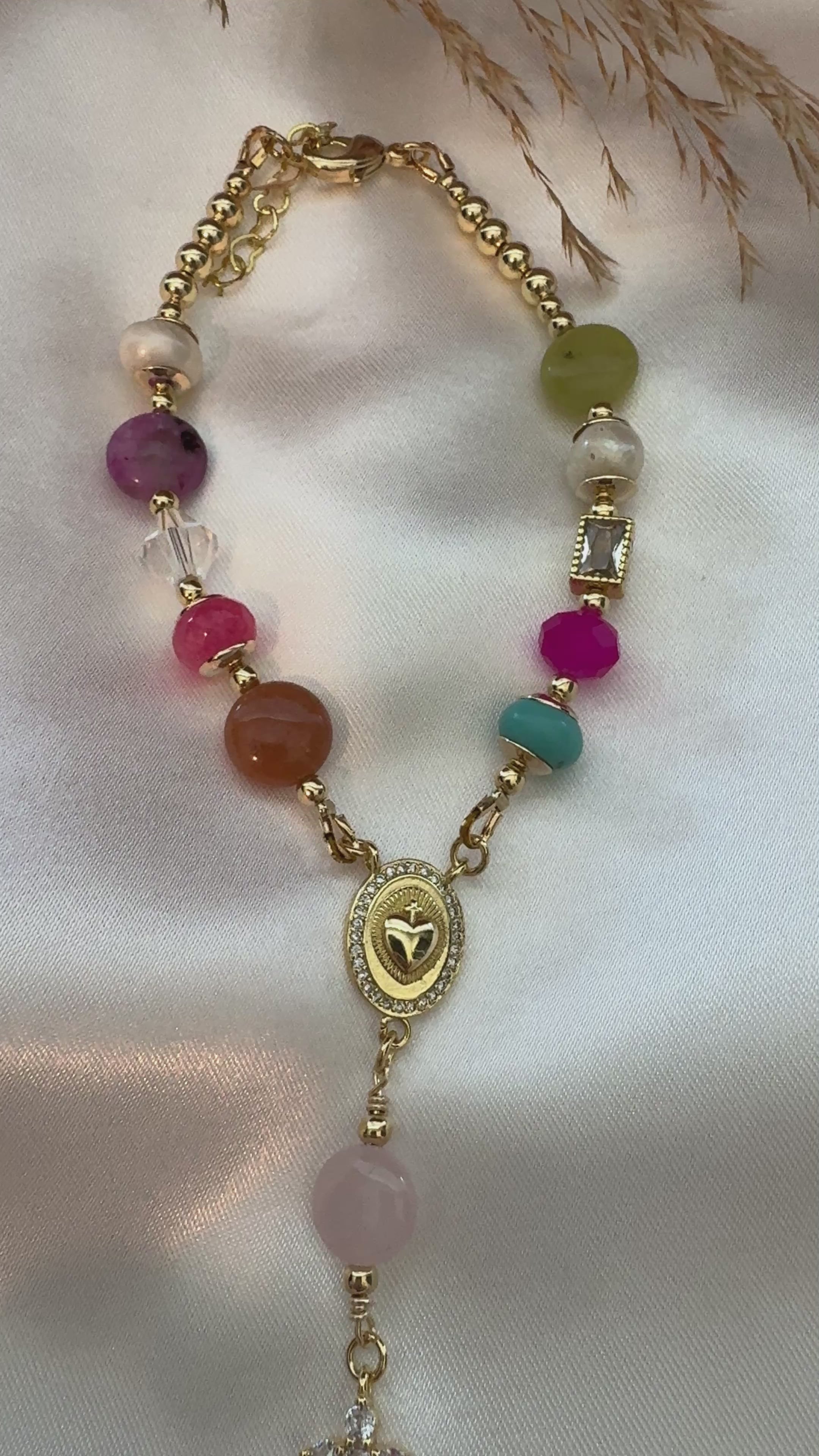 Decenario with crystals, semiprecious stone and 18k gold plated beads!